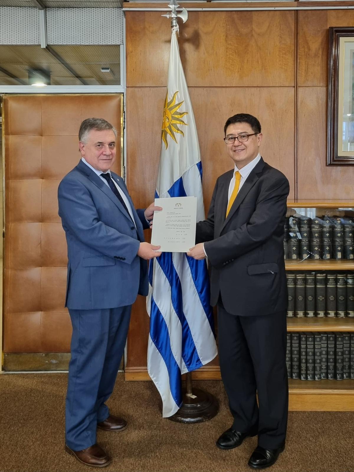El lunes 26 de febrero, el Embajador NOH Wonil, presentó las Cartas Figuradas ante el Canciller Omar Paganini y conversó sobre los principales asuntos bilaterales y ámbitos de cooperación.