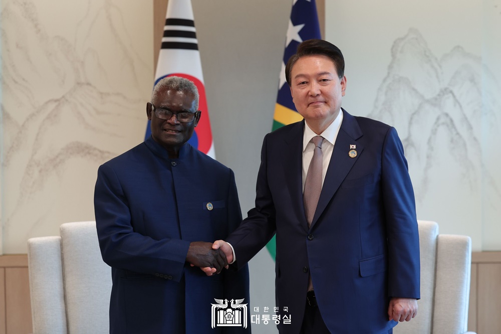 ※ (솔로몬제도) 윤석열 대통령은 양국이 호혜적인 경제협력을 발전시켜 가고 있음을 평가하는 한편, 올해 11월 솔로몬제도에서 개최되는 2023 퍼시픽 게임의 성공을 기원하고, 선수단 수송용 차량 지원을 약속했습니다. 특히 양 정상은 우리 기업이 참여하고 있는 티나강 수력발전소 사업, 뉴조지아섬 조림 사업을 성공적으로 이끌어 양국 경제협력을 한층 더 높은 수준으로 끌어올리자는 데 공감했습니다. 이어서 윤석열 대통령은 공무원과 학생을 대상으로 한 새마을운동 초청 연수, 대학 역량 강화(국립대 해양학과) 지원 등 다양한 개발협력 사업을 활성화해 나겠다고 했습니다.