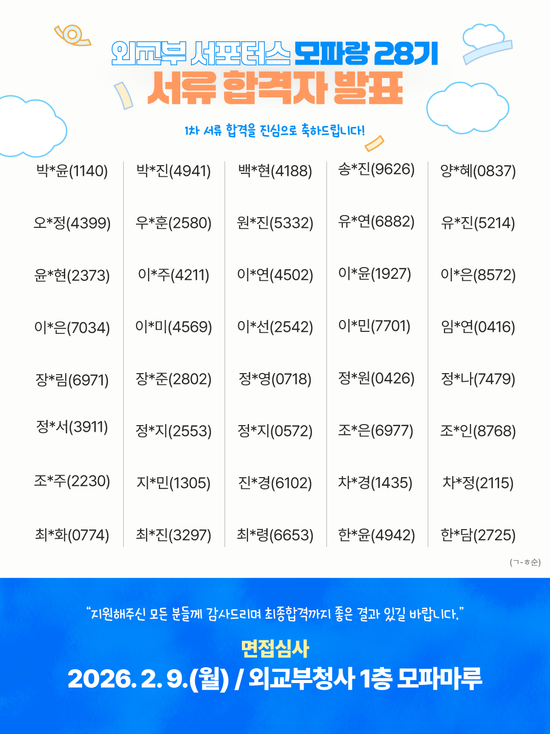 📢 2026년 외교부 서포터스 모파랑 28기 서류 합격자 발표